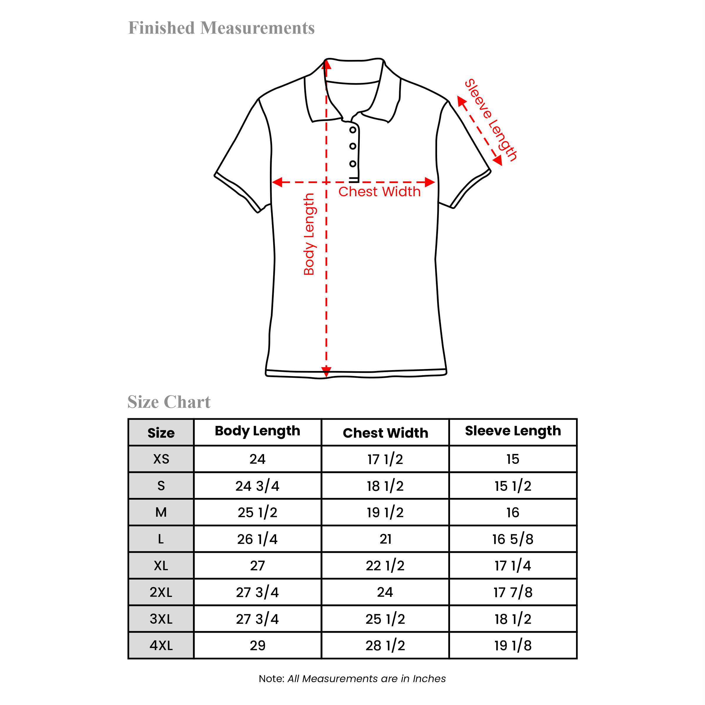 XS, S, M, L, XL, 2XL, 3XL, 4XL